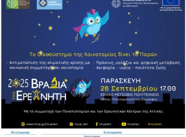 Βραδιά του Ερευνητή στο ΕΜΠ Παρασκευή 26 Σεπτεμβρίου 2025