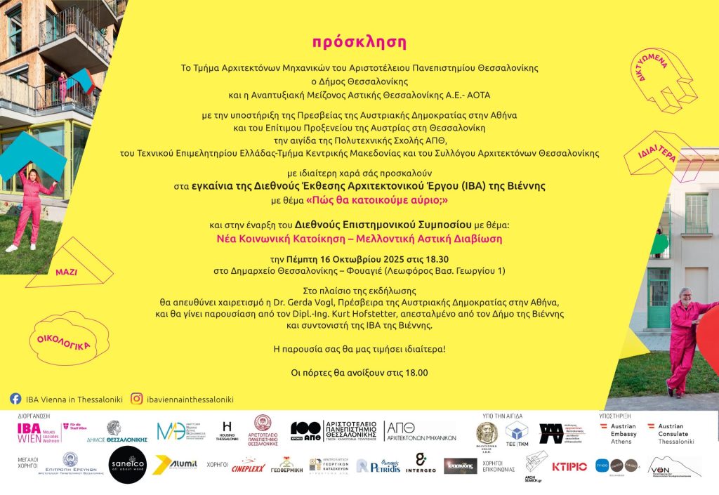 Η παρουσίαση της ΙΒΑ Βιέννης στη Θεσσαλονίκη στοχεύει να εμβαθύνει στη δημόσια συζήτηση για την κατοίκηση στις ελληνικές πόλεις και τη Θεσσαλονίκη ειδικότερα, και να ενδυναμώσει τη συνεργασία τοπικών και εθνικών φορέων που εμπλέκονται στην παραγωγή της κατοικίας και τον σχεδιασμό των γειτονιών της πόλης.
