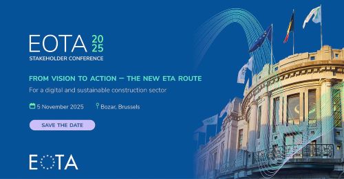 Ο Ευρωπαϊκός Οργανισμός Τεχνικών αξιολογήσεων – European Organisation for Technical Assessment (EOTA) θα φιλοξενήσει τη Διάσκεψη Ενδιαφερόμενων Μερών με τίτλο «Από το Όραμα στη Δράση – η νέα διαδρομή ETA» την Τετάρτη 5 Νοεμβρίου 2025 στις Βρυξέλλες.