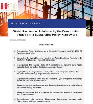 Στις 20 Οκτωβρίου, η Ομοσπονδία Ευρωπαϊκών Κατασκευαστών (Fédération de l’Industrie Européenne de la Construction – FIEC) δημοσίευσε την Πρότασή της για την Πολιτική «Ανθεκτικότητα των Υδάτων: Λύσεις από τη Βιομηχανία Κατασκευών σε ένα Βιώσιμο Πολιτικό Πλαίσιο» (FIEC Position Paper – Water Resilience).