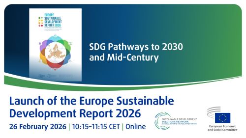 Στις 26 Φεβρουαρίου 2026 η EESC (European Economic and Social Committee), σε συνεργασία με το Δίκτυο Λύσεων για τη Βιώσιμη Ανάπτυξη, θα διοργανώσει μια διαδικτυακή εκδήλωση για την παρουσίαση της Έκθεσης για τη Βιώσιμη Ανάπτυξη στην Ευρώπη 2026 (ESDR 2026), η οποία παρακολουθεί ετησίως από το 2019 τις επιδόσεις όλων των κρατών μελών της ΕΕ όσον αφορά τους Στόχους Βιώσιμης Ανάπτυξης.