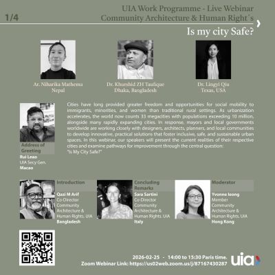 Η UIA Community Architecture & Human Rights Work Programme διοργανώνει στις 25 Φεβρουαρίου 2026 ένα διεθνές διαδικτυακό σεμινάριο με τίτλο «Is My City Safe?», ανοίγοντας τη συζήτηση γύρω από ένα κρίσιμο ερώτημα για τις σύγχρονες πόλεις: πόσο ασφαλείς είναι πραγματικά για τους ανθρώπους που ζουν σε αυτές.