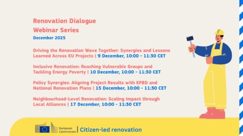 Τον Δεκέμβριο του 2025, η ευρωπαϊκή πλατφόρμα Citizen-Led Renovation Dialogue θα συγκεντρώσει ειδικούς, υπεύθυνους χάραξης πολιτικής και επαγγελματίες σε τέσσερα ενδιαφέροντα διαδικτυακά σεμινάρια για τις ανακαινίσεις, που θα πραγματοποιηθούν στις 9, 10, 15 και 17 Δεκεμβρίου, στις 11:00 – 12:30 ώρα Ελλάδας.